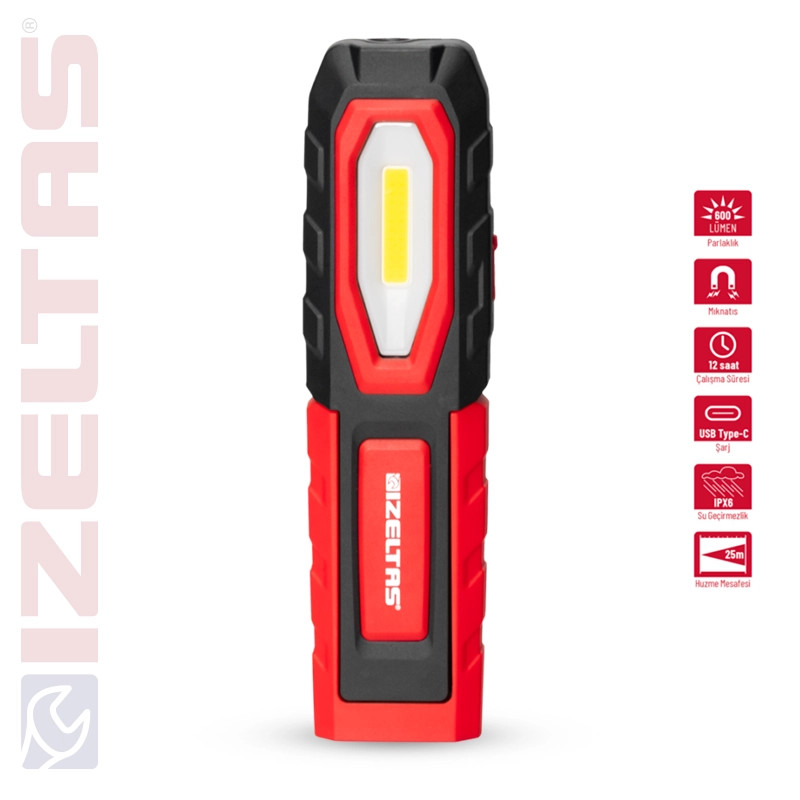 Izeltas COB LED mágneses szerelőlámpa, steklámpa 600 LM 4000 mAh Li-Ion, USB-C töltő kábellel, powerbank üzemmód, 14000 005383