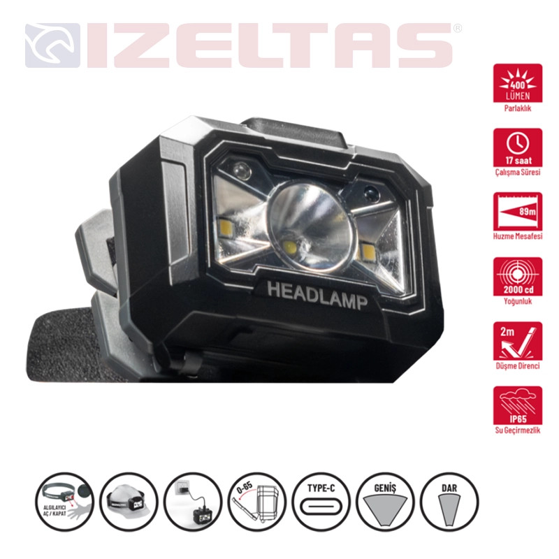 Izeltas érzékelős fejlámpa 400 LM 1500 mAh LiPo, USB-C, 14000 005347