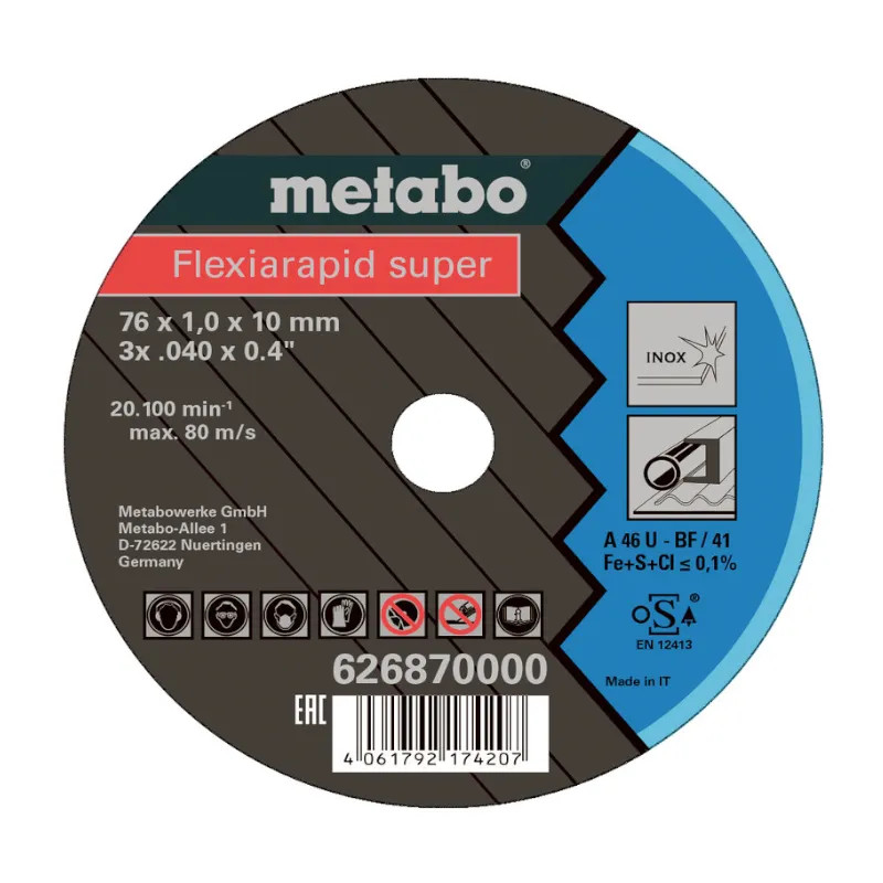 Metabo vágókorong 76x1,0x10,0mm, TBF41, inox, 5db/ doboz, 626870000