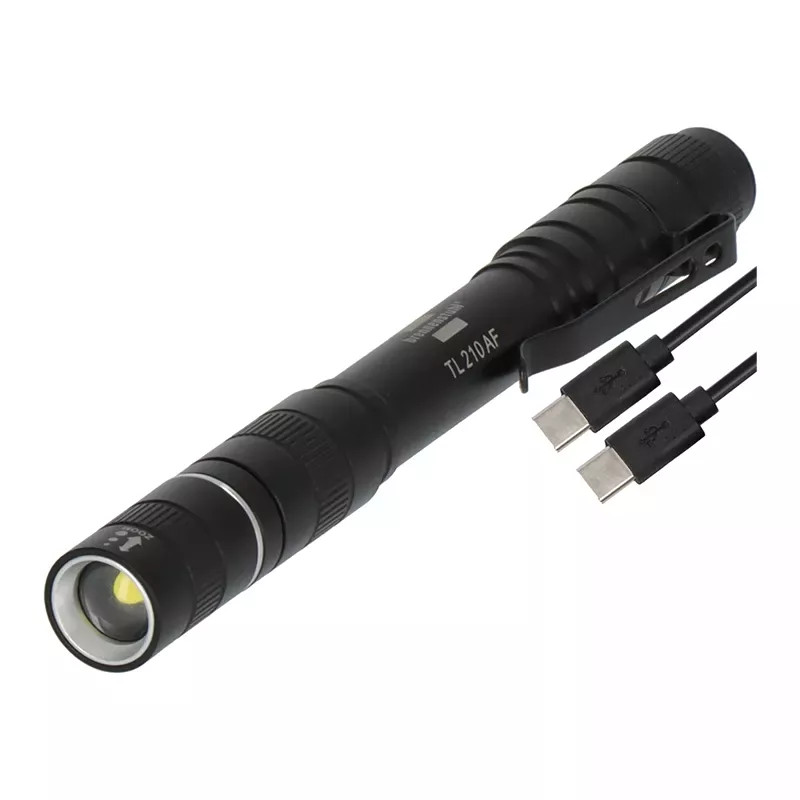 Szupervékony tolllámpa cserélhető újratölthető akkumulátorral (3,7V/600mAh), C típusú USB töltőkábellel,