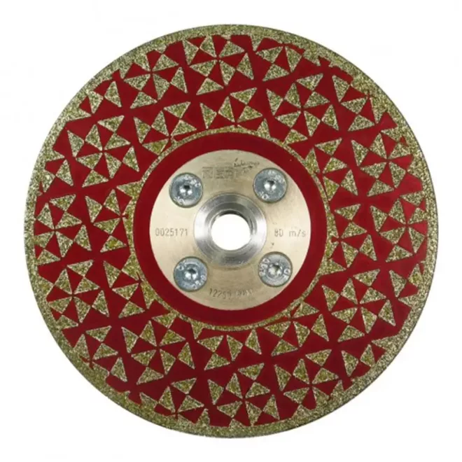 Márványlapok, gránit, lágykő és kompozitok formázása, vágása és csiszolására tervezett speciális gyémánttárcsa. Száraz és vizes vágásra és csiszolásra egyaránt alkalmas, mindkét oldalon bevonatos, folyamatos élű gyémánttárcsa. A magas és jó minőségű szintetikus gyémánttartalom biztosítja a kimagasló teljesítményt. Durva oldalak és élek simításához is kiválóan használható.