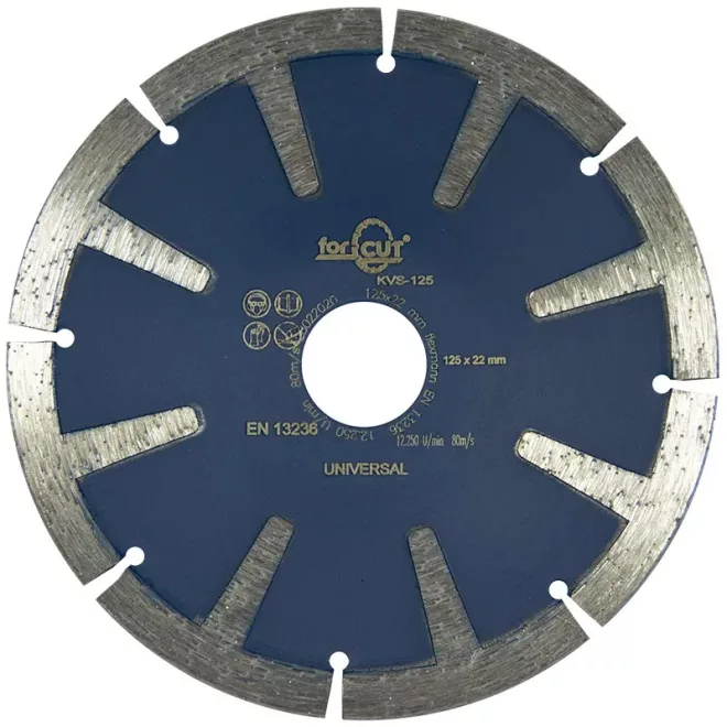 - Konkáv / domború, speciálisan ívek vágásához tervezett és gyártott gyémántkorong.