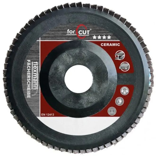 Flexmann For Cut kerámia lamellás csiszolókorong 125x22mm K60, műanyag, kúpos, fém-inox, CK-1326