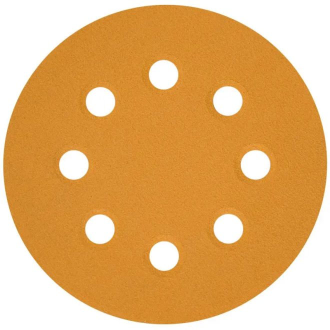 Flexmann For Cut tépőzáras csiszolókorong GOLD 125mm, GLS5(8 lyuk), fa, festék, lakk, kitt