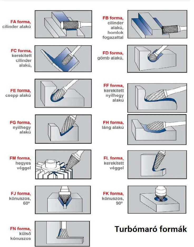 Flexmann For Cut turbómaró, keményfém maró A forma, 6-os kereszt fogazás, fém-inox