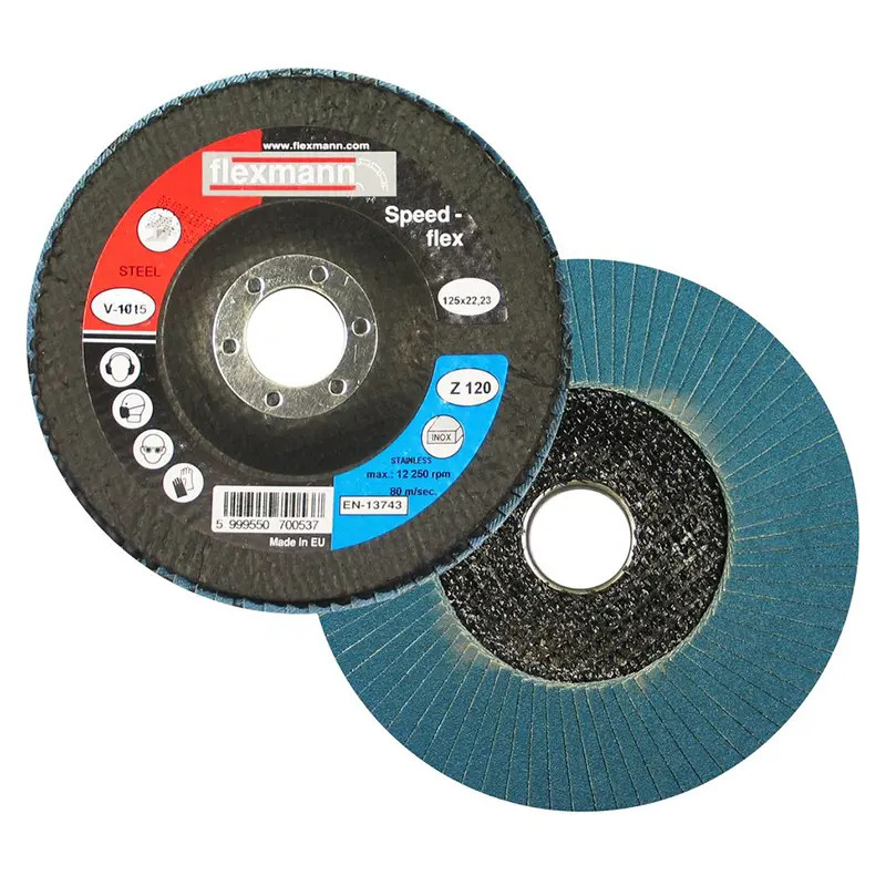Flexmann Speed-flex lamellás csiszolókorong 125x22,2mm, Z120, kúpos, fém-inox, V-1015