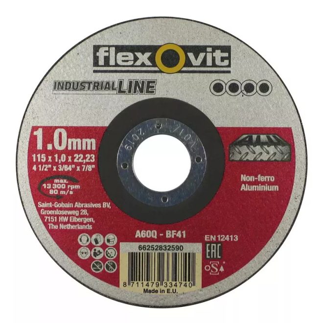 66252832590 Flexovit Industrial Line vágókorong 115x1,0x22,2mm, BF41, ALU