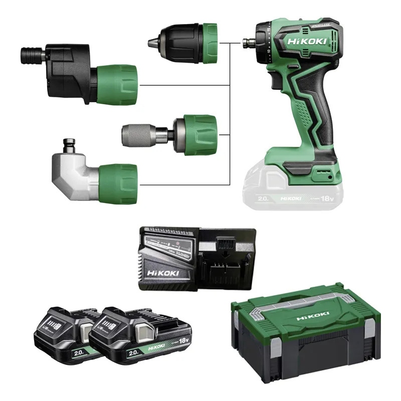 Hikoki akkus 18V fúró-csavarozó, 55Nm+ 2db 18V/2,0Ah akku+ töltő + ajándék 3db cserélhető fej +Hitbox, DS18DDQWRZ