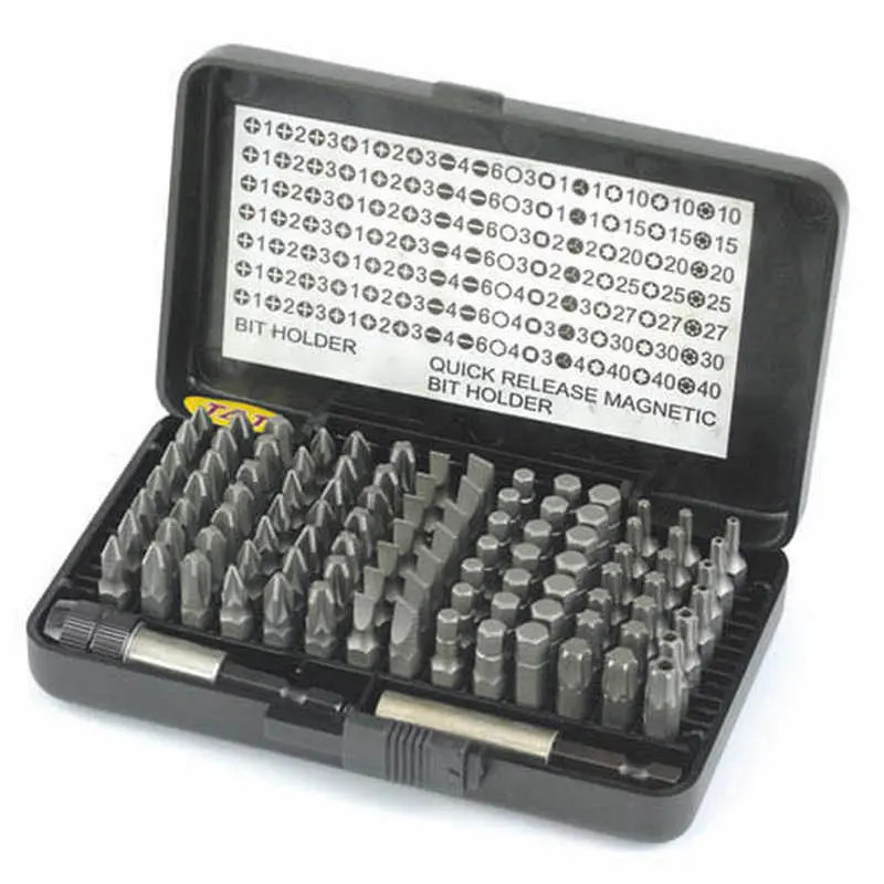 Hikoki bitkészlet, 100db-os, 1/4" mágneses bittartóval, gyorstokmánnyal, PH/PZ/FL/T/TX/hatlapú, 754000