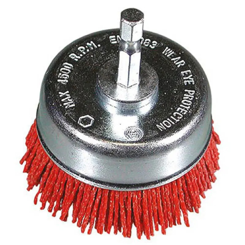 • Megnevezés: Száras fazékkefe nejlon huzalszál korund csiszolóanyaggal, fúrógépekhez, hatlapú befogással