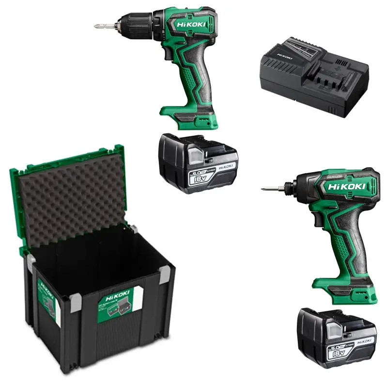 Hikoki DS18DD-BASIC akkus fúró-csavarozó +WH18DD-BASIC akkus ütvecsavarozó +2db 18V, 5.0Ah akku +UC18YFSL töltő, Hitboxban, KC18DDWAZ