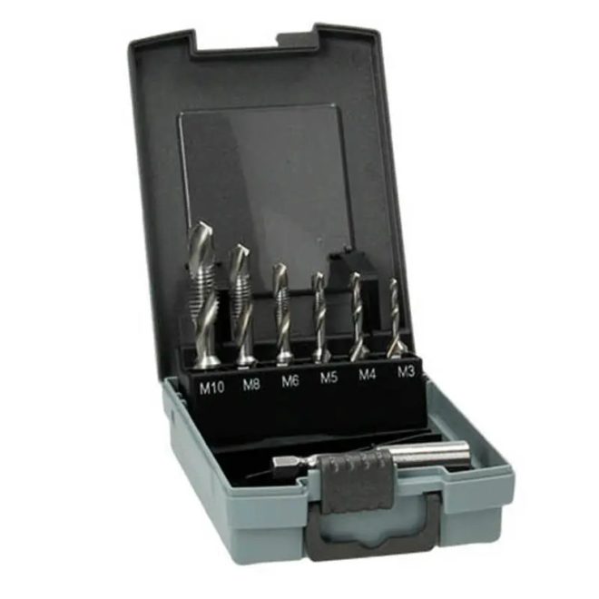 Hikoki kombi menetfúró készlet 7db-os, fúró-menetfúró-süllyesztő, M3/4/5/6/8/10, HSS-G, hatlapú HEX 1/4", 780139