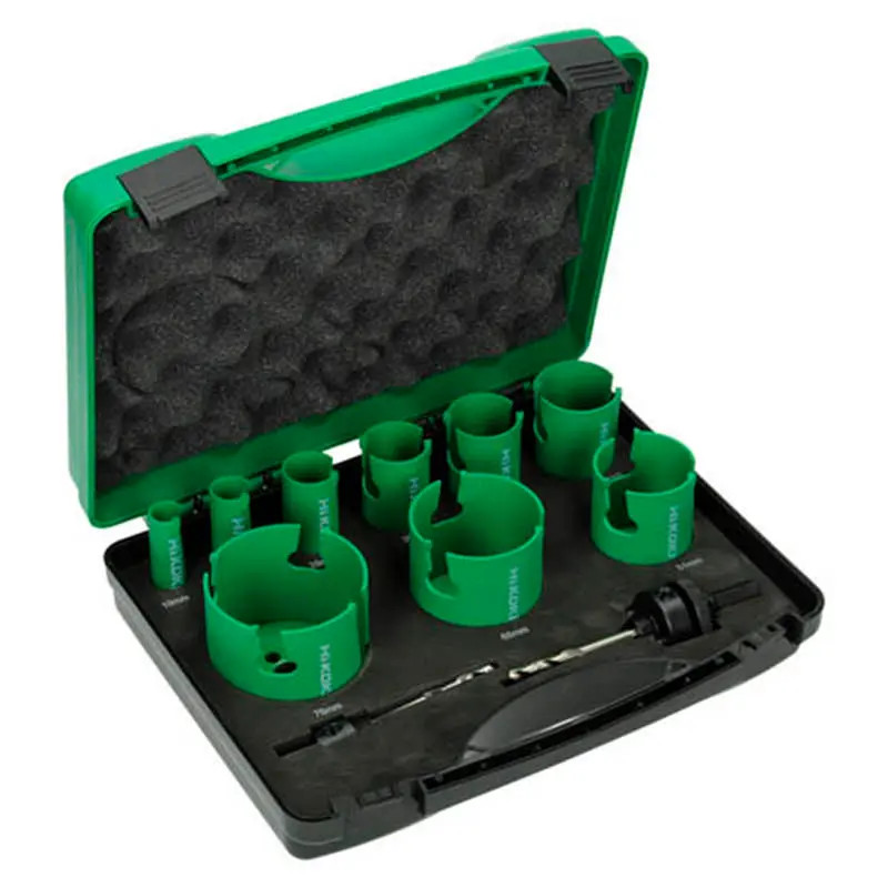 Hikoki lyukfűrész, körkivágó készlet 12db-os 16/20/25/29/32/35/51/60/65/76 mm, TCT keményfémlapkás, 754254