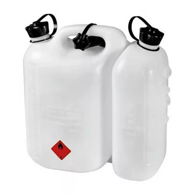Hikoki üzemanyagkanna, 2 tartályos, átlátszó, szabványos kiöntőcsővel, UN/BAM/TÜV engedéllyel, 5/3 literes, 714822