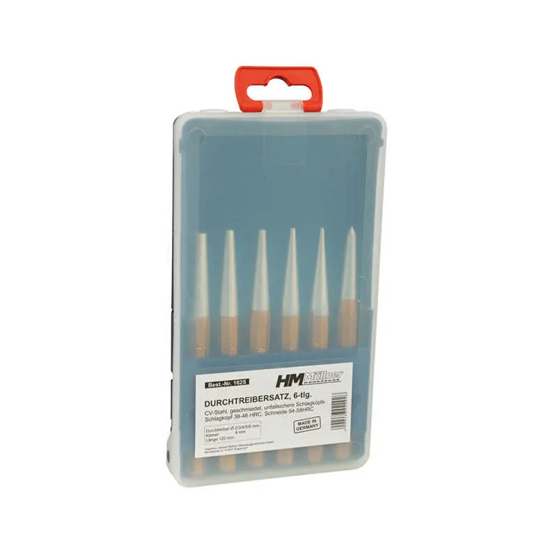 HM Müllner csapszegkiütő és lyukasztó készlet, CV, műanyag dobozban 6 részes, 162S