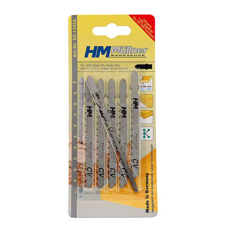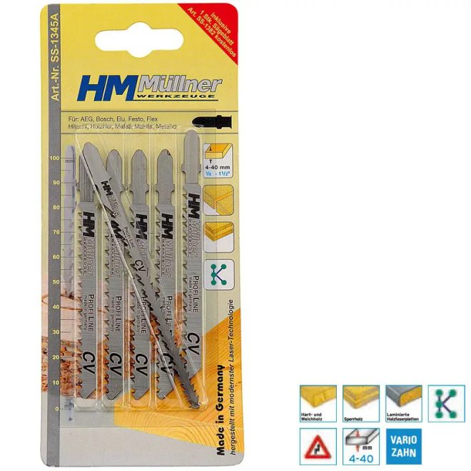 5db SS-1345- HM Müllner dekopírfűrészlap, szúrófűrészlap CV, 100x75x3x8x8x1,45mm Vágási vastagság 6-30mm