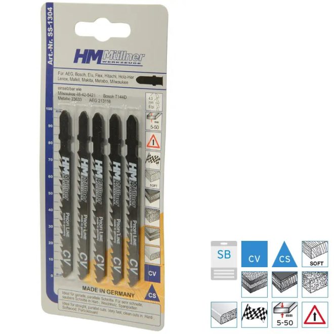 HM Müllner dekopírfűrészlap, szúrófűrészlap CV, 5db/csom 100x75x4x6x8x1,25mm Vágási vastagság 5-50mm