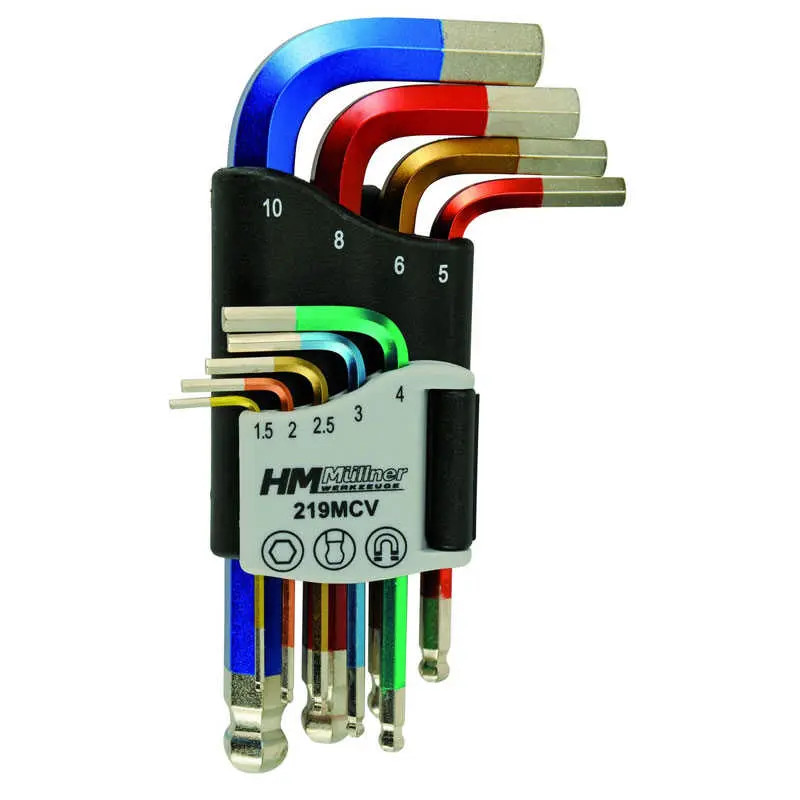 Golyós fejű imbuszkulcs készlet, 9 darab, 1,5-10 mm, mágnessel