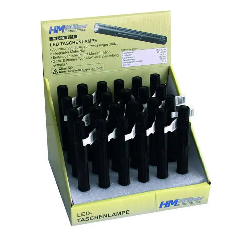 HM Müllner LED zseblámpa, 1W 132x15mm, 2db AAA elemmel, 1551