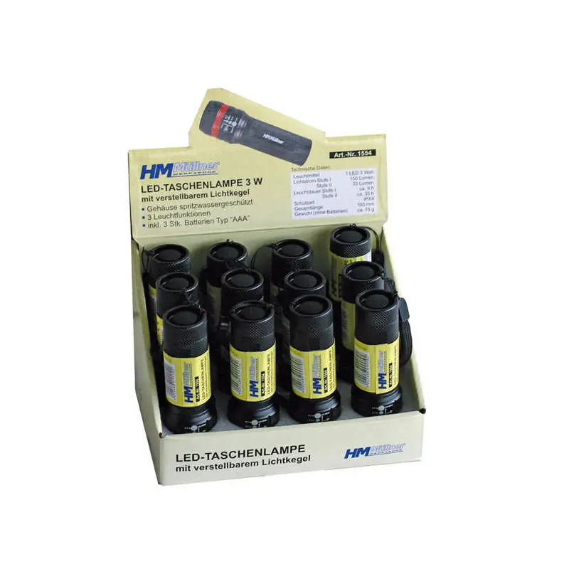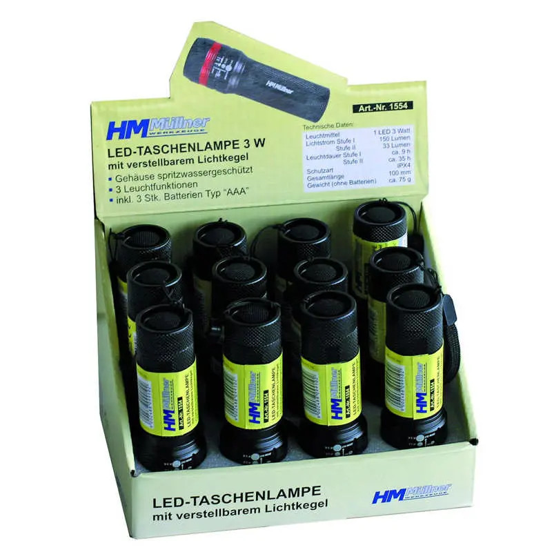 HM Müllner LED zseblámpa, 3W Zoom funkcióval 100x33mm, 3db AAA elemmel, 1554