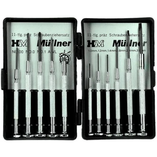 HM Müllner órás, műszerész csavarhúzó készlet 11 részes, PH/FL, bliszteres, T1400