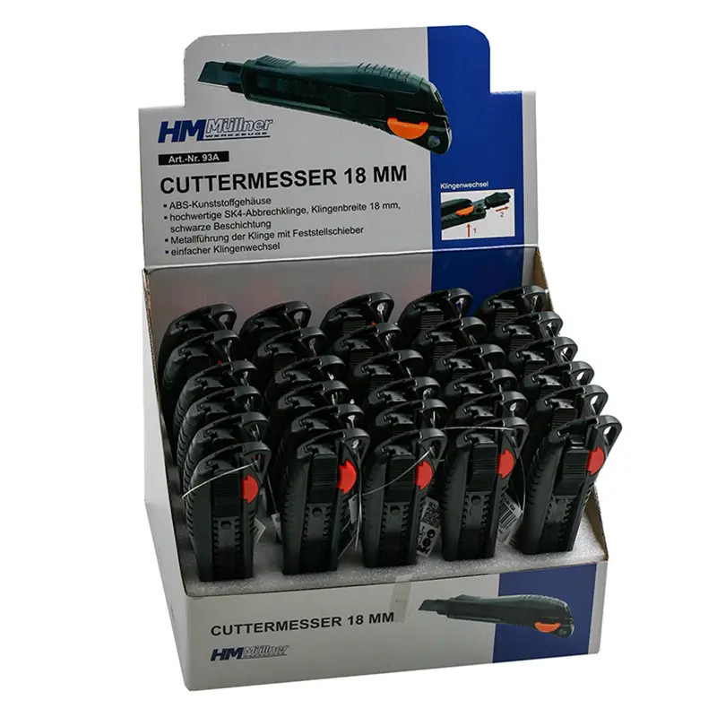 HM Müllner tapétavágó, törhető fekete pengés kés 18mm, műanyag ház, 93A
