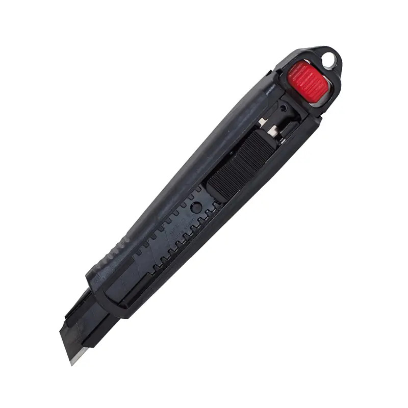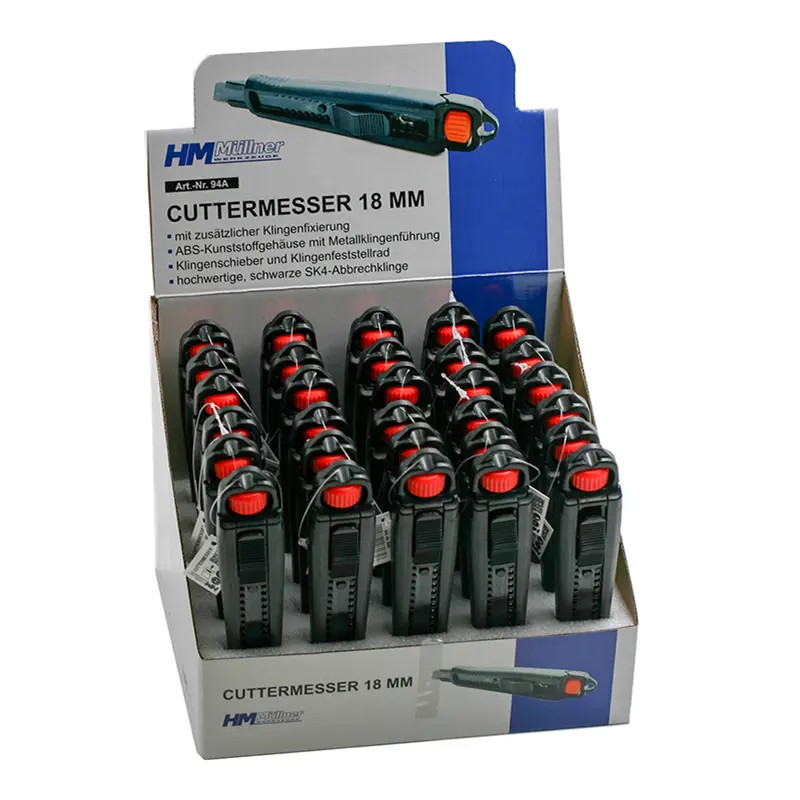 HM Müllner tapétavágó, törhető fekete pengés kés 18mm, műanyag ház, penge rögzítő kerékkel, 94A