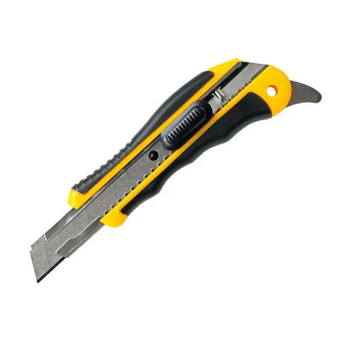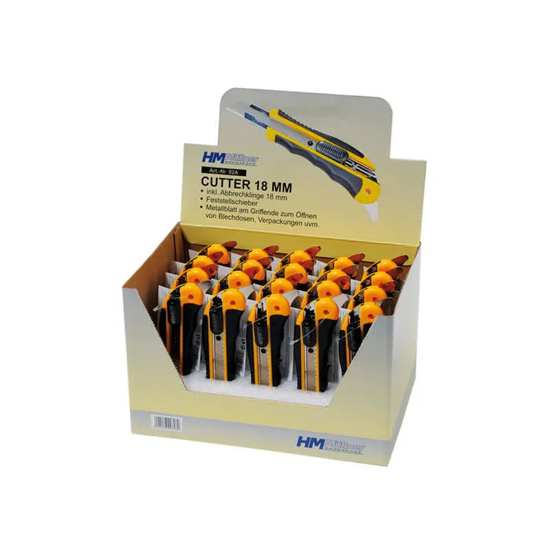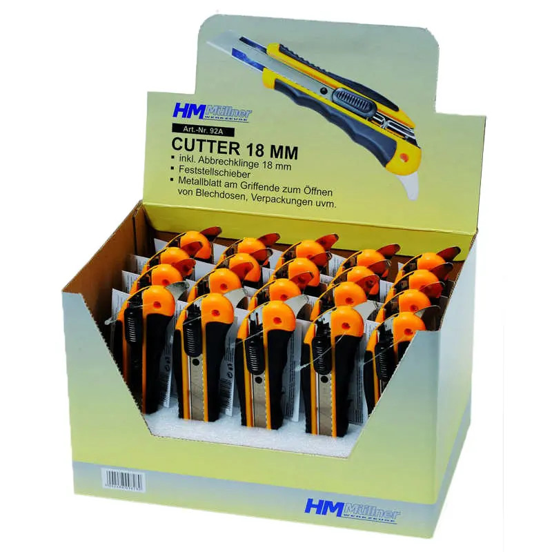 HM Müllner tapétavágó, törhető pengés kés 18mm, műanyag ház, penge fémvezetője reteszelő tolózárral, fém pengével a fogantyú végén, 92A