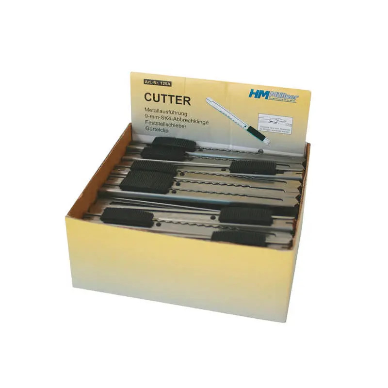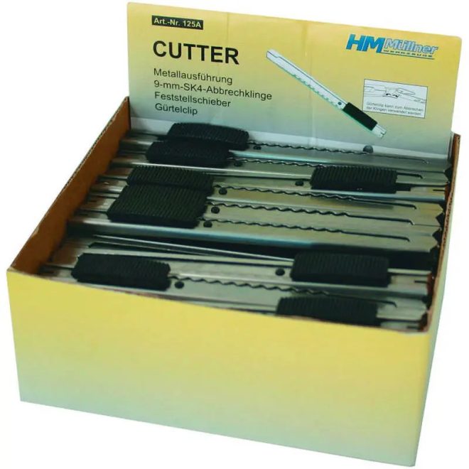 HM Müllner tapétavágó, törhető pengés kés 9mm, fém markolat, penge fémvezetője reteszelő tolózárral, 125A