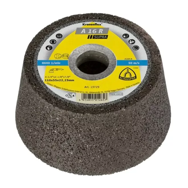Klingspor fazékkorong,fazékkő 110x55x22,2mm domborított-A 16 R SUPRA-acél
