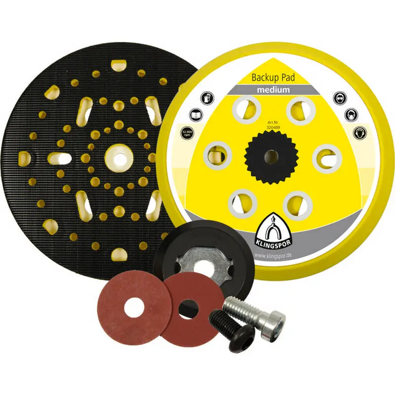 Klingspor gumihátlap excentercsiszolóhoz, többlyukas 150mm M8 menet-HST 555-lágy, Festool adapter, 320488