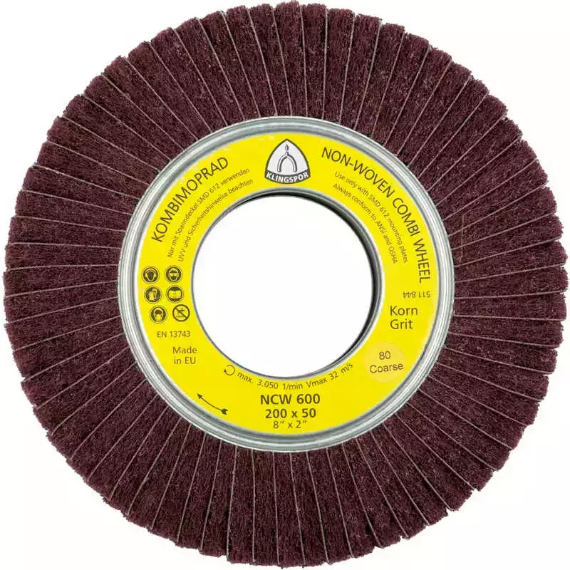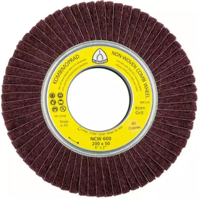 Klingspor lamellás kombinált csiszolókorong vlies-mop 165x50x43,1mm-vörösbarna- NCW600-inox,áltfém