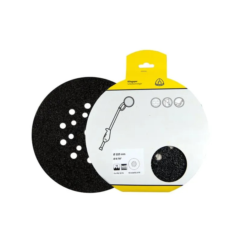 Klingspor tépőzáras csiszolótárcsa 225mm P16, lyukas GLS 55, PS 19 EK SB -festék/lakk/kitt,fa (5db), 665097