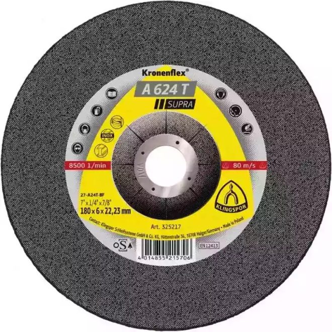 Klingspor tisztító, csiszolókorong-domborított-A 624 T SUPRA-acél,inox,öntvény