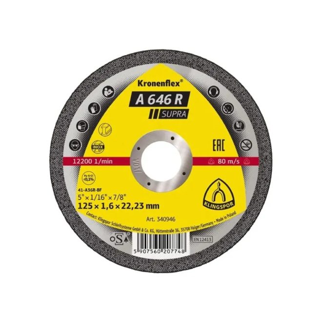 Klingspor vágókorong 150x1,6x22,2mm egyenes-A 646 R SUPRA-inox,acél, 340945
