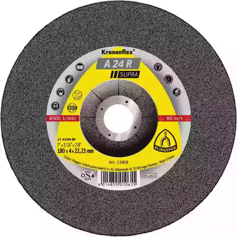 Klingspor vágókorong 180x3,0x22,2mm egyenes-A 24 R SUPRA-acél, 13456