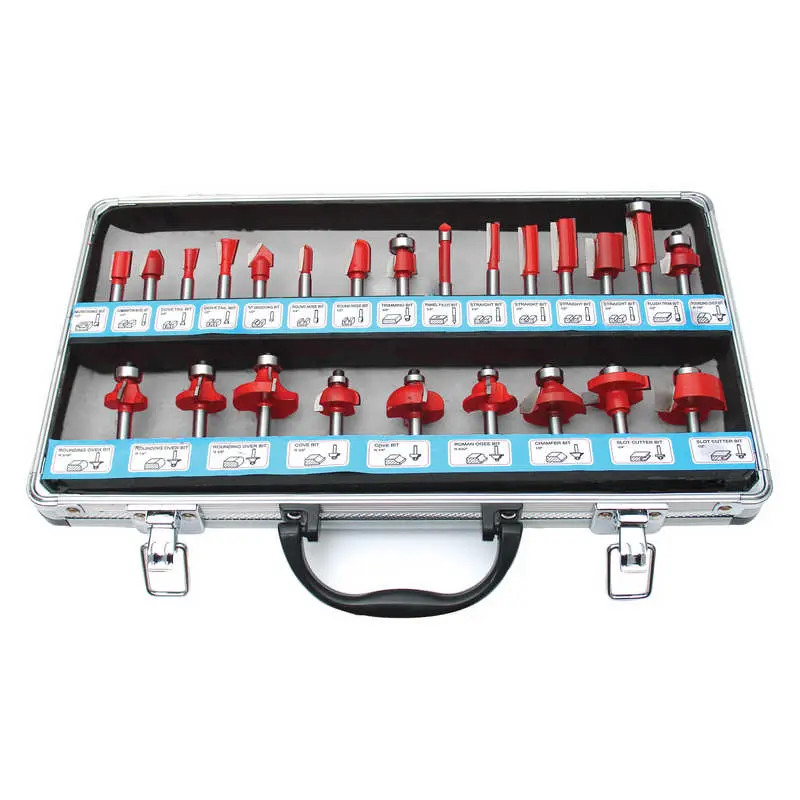 Formavágók fához - 24 db-os készlet, a marók kiváló minőségű SK pengével, különböző típusú vezetőkerék nélküli vagy vezetőkerék nélküli formavágókkal és