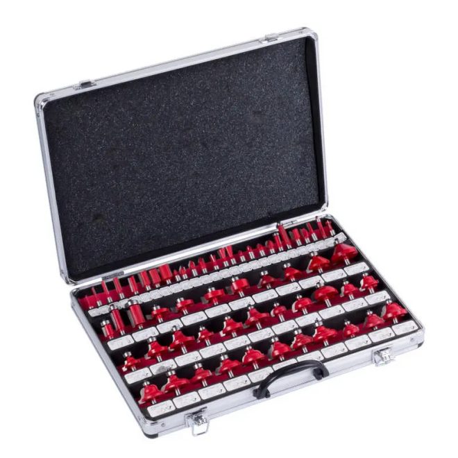 Formavágók fához - 59 db-os készlet, a marók kiváló minőségű SK pengével, különböző típusú vezetőkerék nélküli vagy vezetőkerék nélküli formavágókkal és