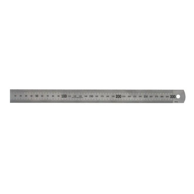 Festa minőségi rozsdamentes acél (INOX) vonalzó / mérőléc. Vésett skála mm-ben, milliméteres osztással mindkét oldalán, a skála szélessége 25 mm. 0 pont a vonalzó szélén, átváltási táblázattal a vonalzó hátulján.