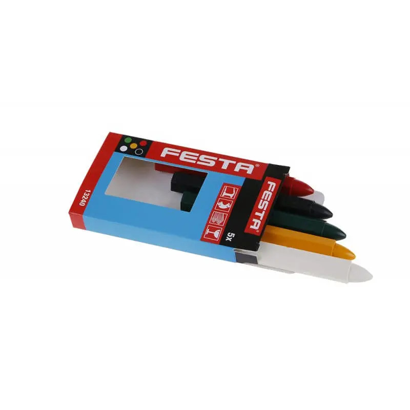 Pasztell marker készlet, hossza 120 mm, 5 színű (piros, fekete, sárga, zöld, fehér) csomagban.