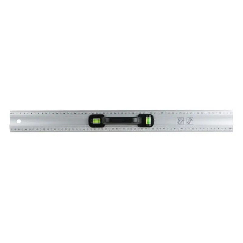 Alumínium vonalzó fogantyúval, kétoldalas milliméteres skálával.