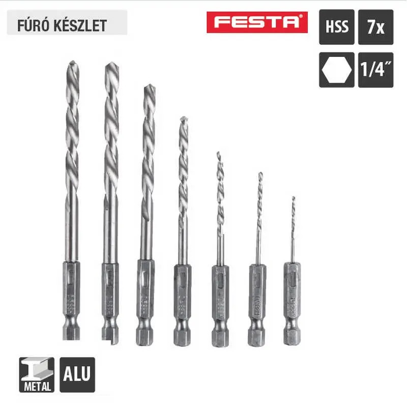 1/4, anyaga HSS, szabvány DIN338, 7 db-os készletben, átmérő: 1,5-2-3-4-5-5,5-6 mm.