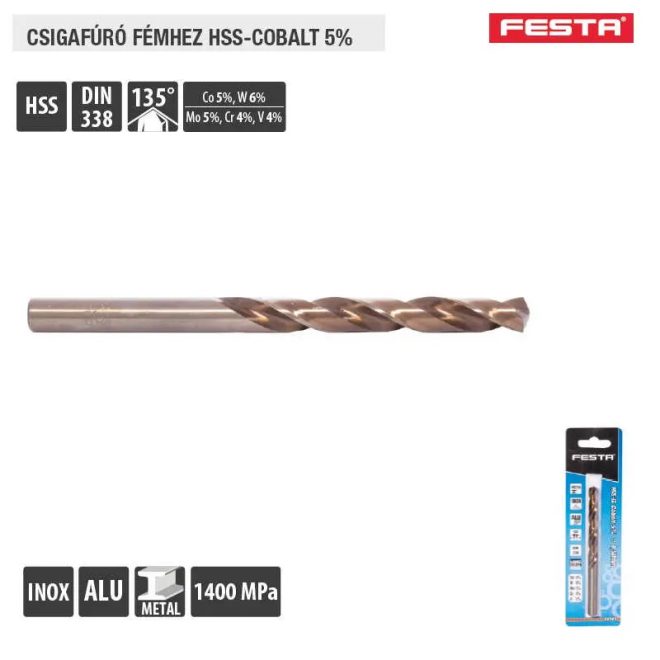 Lev Festa fúrószár/fémcsigafúró DIN 338 HSS-E (5%kobalt) 3,50mm- fém-inox, Alu, 22535