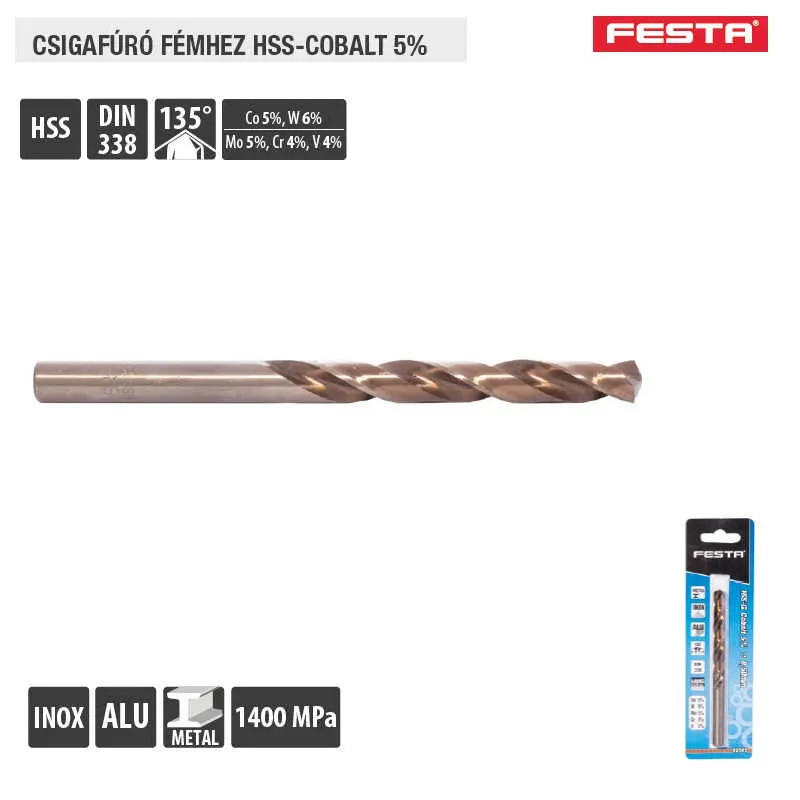Lev Festa fúrószár/fémcsigafúró DIN 338 HSS-E (5%kobalt) 5,50mm- fém-inox, Alu, 22555