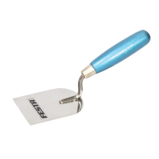 FESTA rozsdamentes acél 40 mm-es kanál fa nyéllel. Minőségi rozsdamentes acél. Építőipari befejező munkákhoz használják.
