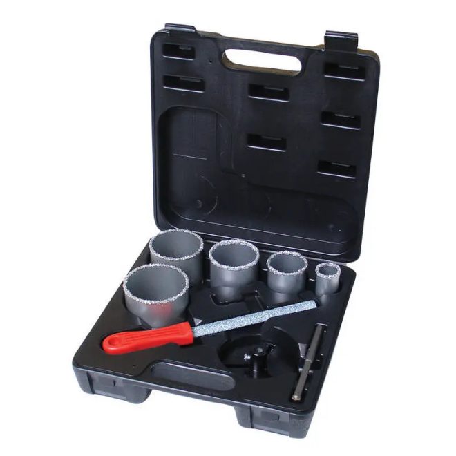 Lev Festa gyémánt körkivágó készlet 8 részes 33/53/67/73/83mm, köszörű, k.fúró, felfogó, tároló, kerámia, építőip. a, 24747