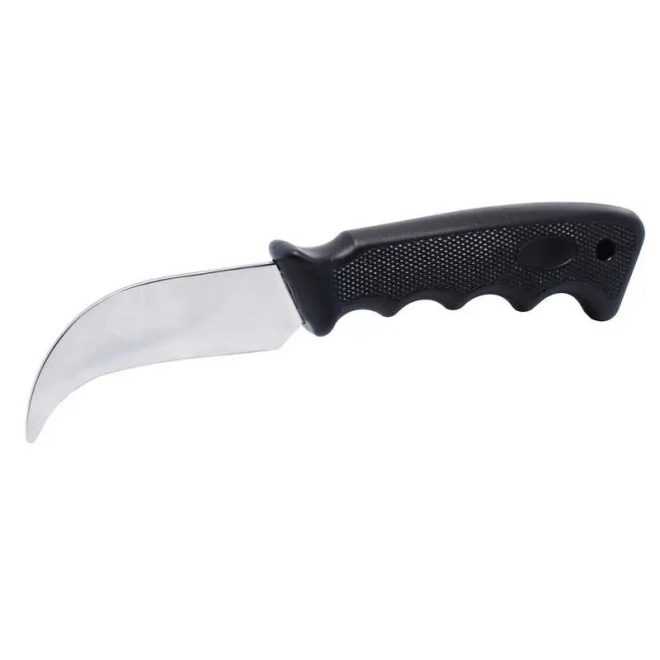 Kés ívelt pengével, padló- és tetőburkolatok, szigetelések stb. vágására,