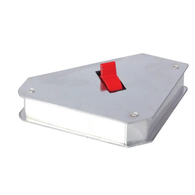 Állandó mágnesek precíz acéltokokban, adott szögben végzett hegesztési segédeszköz.
