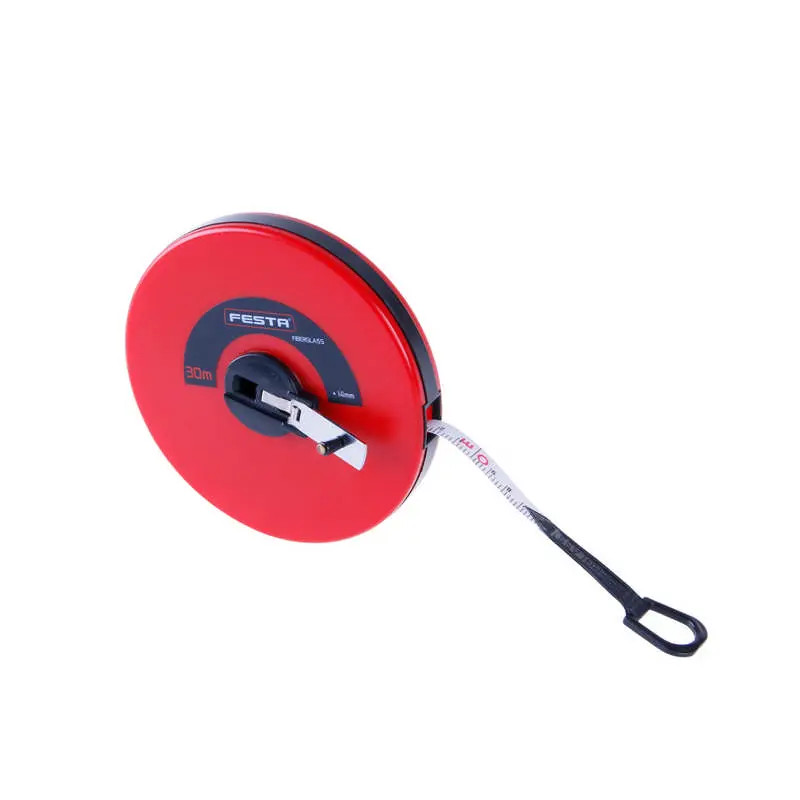 Festa minőségi és precíz üvegszálas, nagy méretű mérőszalag. Csévélhető műanyag dobon. Fűzőlyuk végű szalag szakadás elleni gumi védelemmel, CE tanúsítvánnyal - kalibrálásra alkalmas.