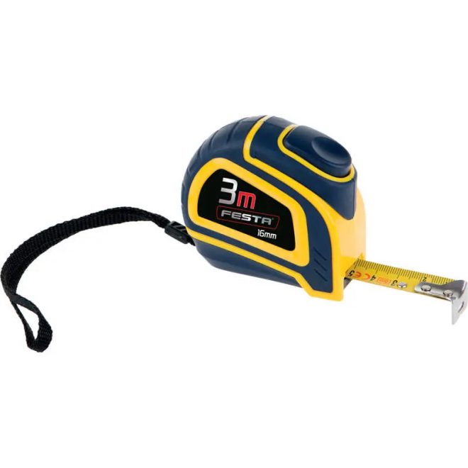 Lev Festa mérőszalag 3mx16mm, nylon bevonat, automatikus fék, gumizott, CE II. oszt., 11343